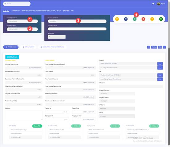 Lengkapi identitas contract (pilih nomor kontrak, ketik nomor invoice,