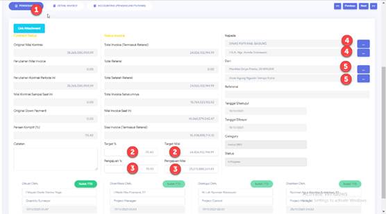 Tabel Status Invoice : Isi Target % atau Target Nilai, Isi Pengajuan %