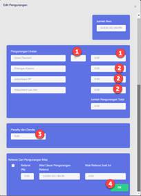 Klik tombol Edit Pengurangan > masukkan nilai % pengurangan DP. Dan