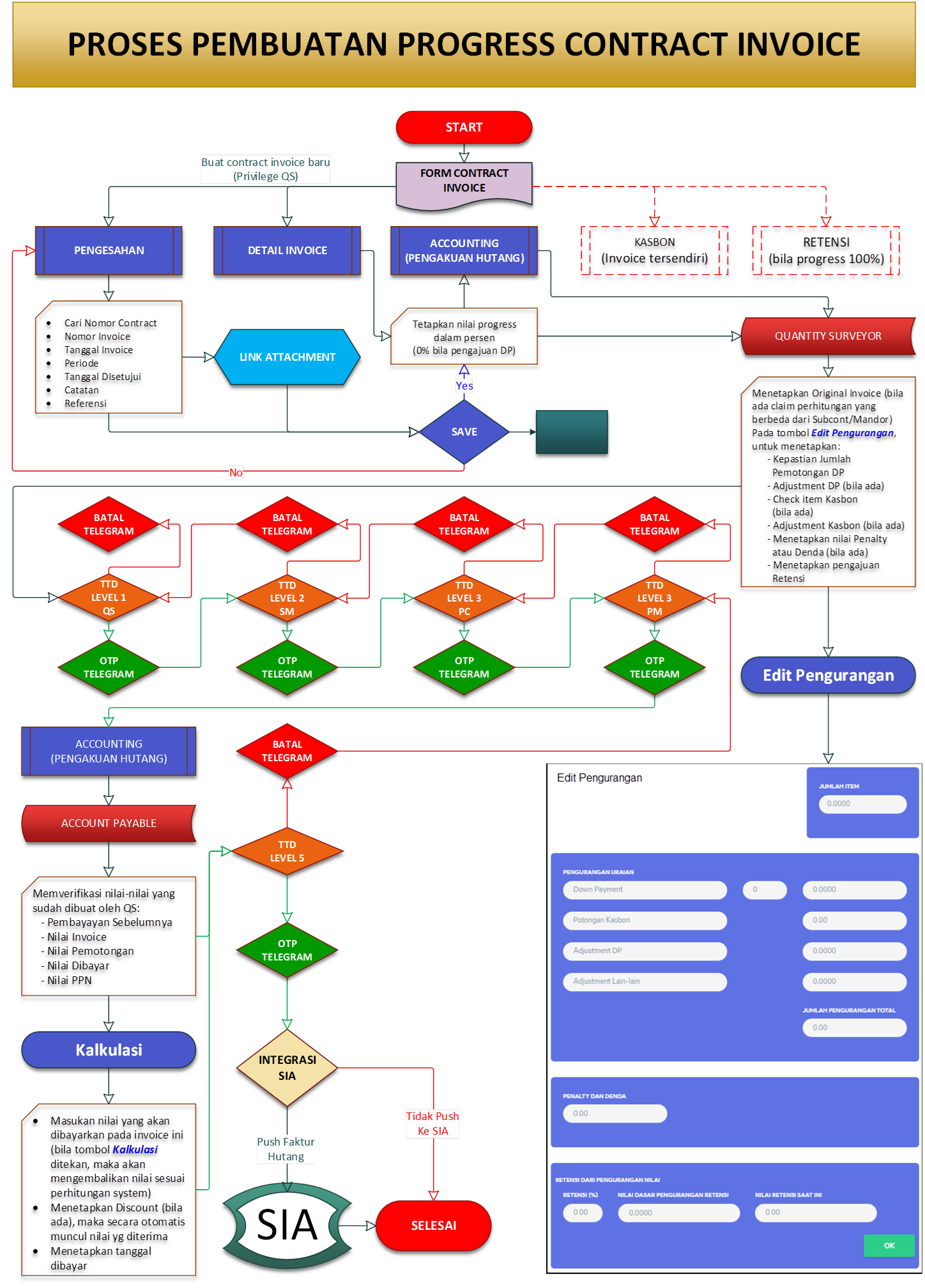 diisi % DP dan nilai rupiah invoice pengembalian DP |