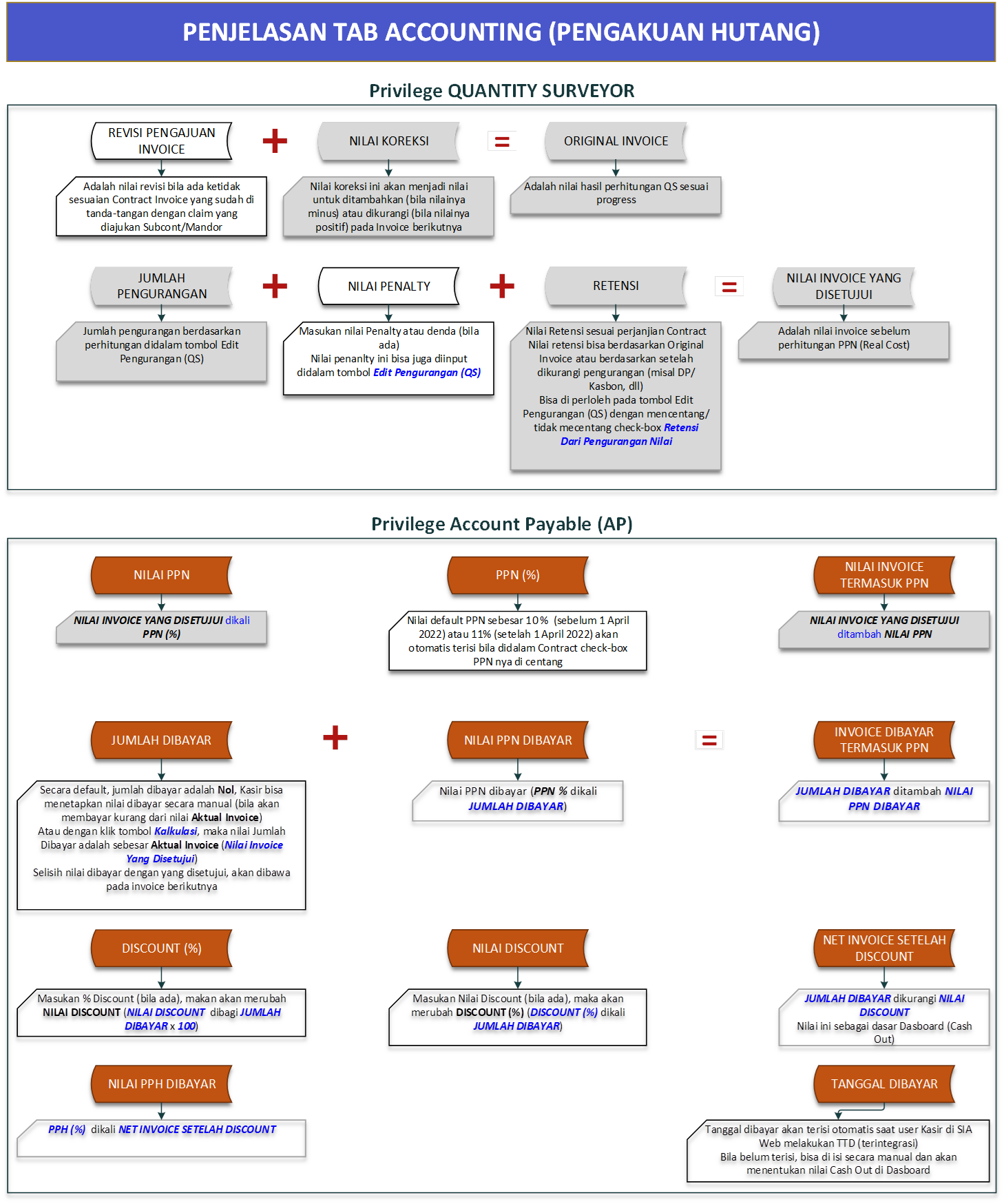 (terisi otomatis) saat input kontraka = Qty x Harga Sat |
