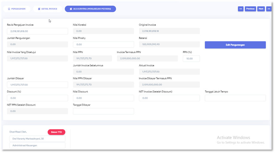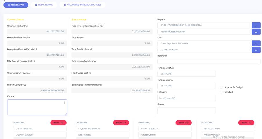 perubahan invoice akibat pekerjaan tambah kurang |