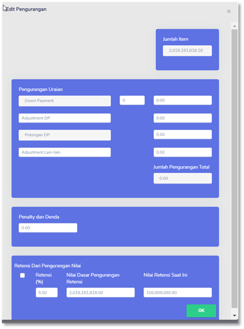 Jumlah nilai total pengurangan dari invoice yg diajukan ???? |