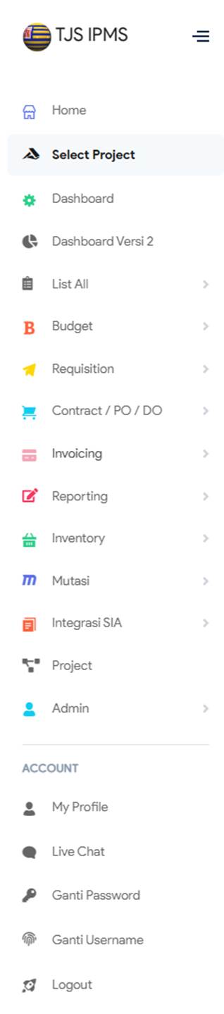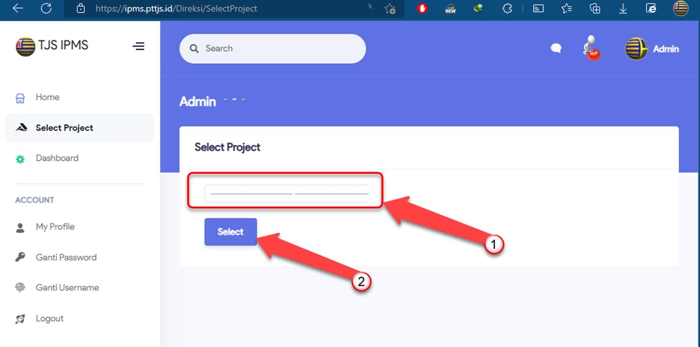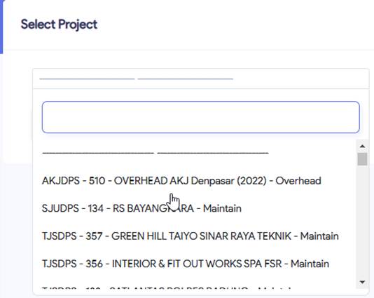 seperi gambar diatas, selanjutnya user bisa memilih proyek sudah akan muncul didalam list proyek yang tersedia.