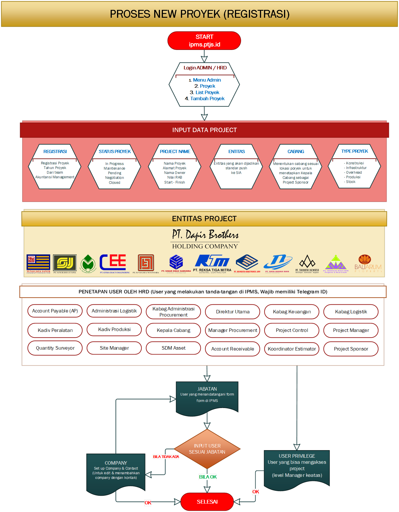 Merupakan proses persiapan sebelum memulai menggunakan IPMS pada suatu proyek, seperti : pemberian nomor regristasi proyek, penetapan user-user / pengguna di IPMS, dll. Yang harus dipersiapkan datanya untuk pembuatan kamar baru di IPMS, secara rinci data yang dibutuhkan adalah: